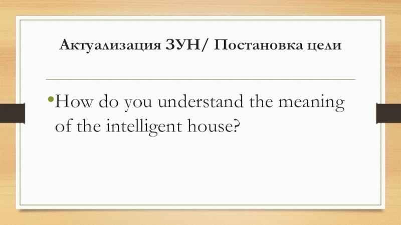 Актуализация ЗУН/ Постановка цели How do you understand the meaning of the intelligent house?