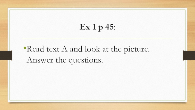 Ex 1 p 45:Read text A and look at the picture. Answer the questions.