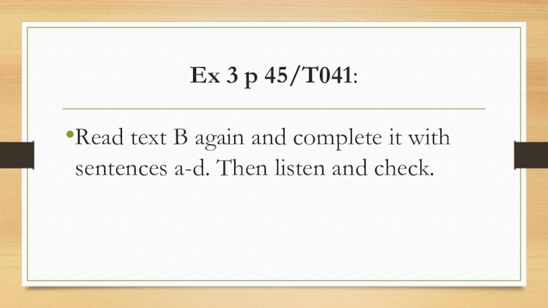 Ex 3 p 45/T041:Read text В again and complete it with sentences a-d. Then listen and check.