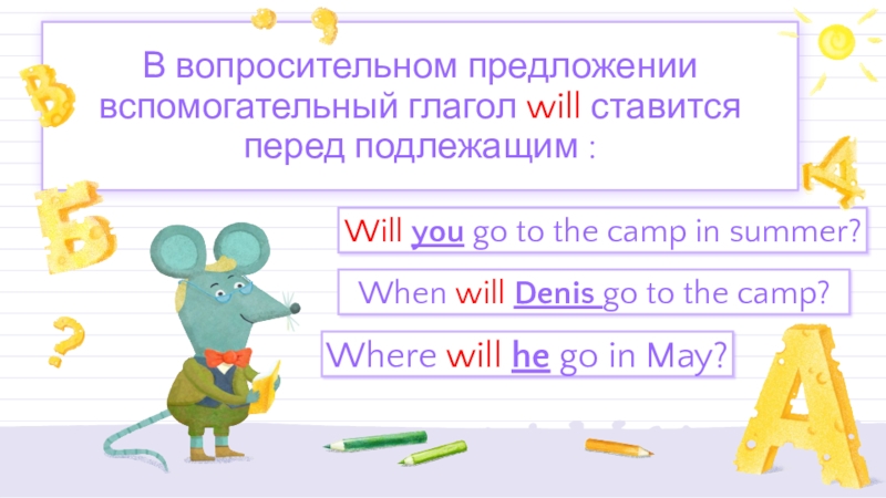 В вопросительном предложении вспомогательный глагол will ставится перед подлежащим :