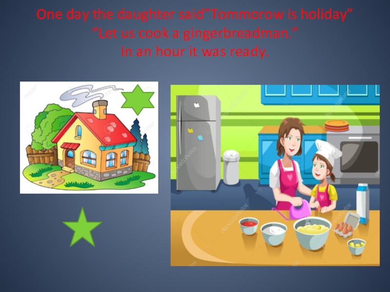 Слайд 4One day the daughter said”Tommorow is holiday” “Let us cook a gingerbreadman.” In