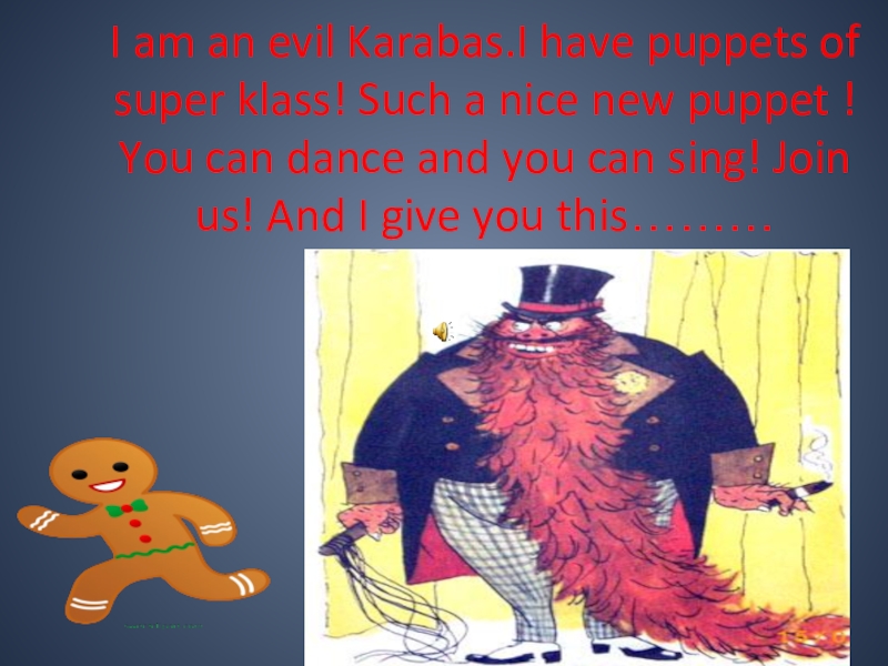 Слайд 10I am an evil Karabas.I have puppets of super klass! Such