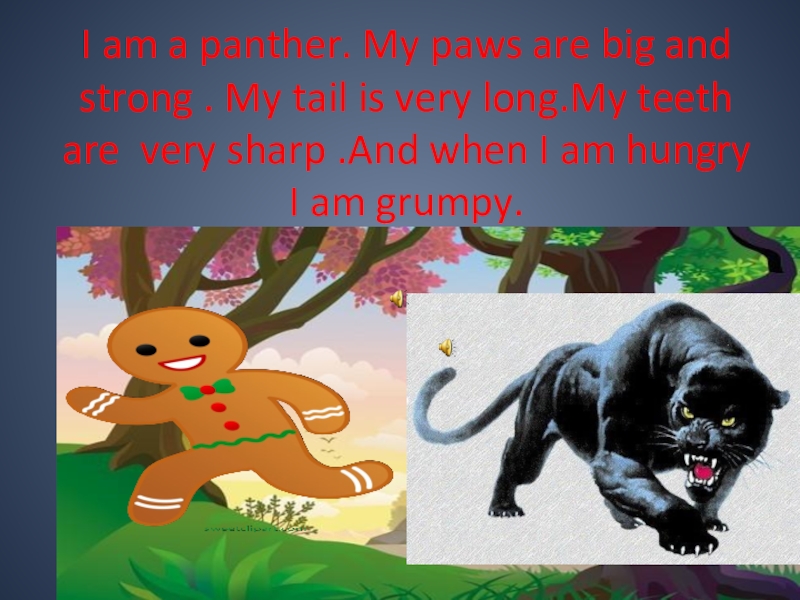 I am a panther. My paws are big and strong . My tail is very long.My teeth