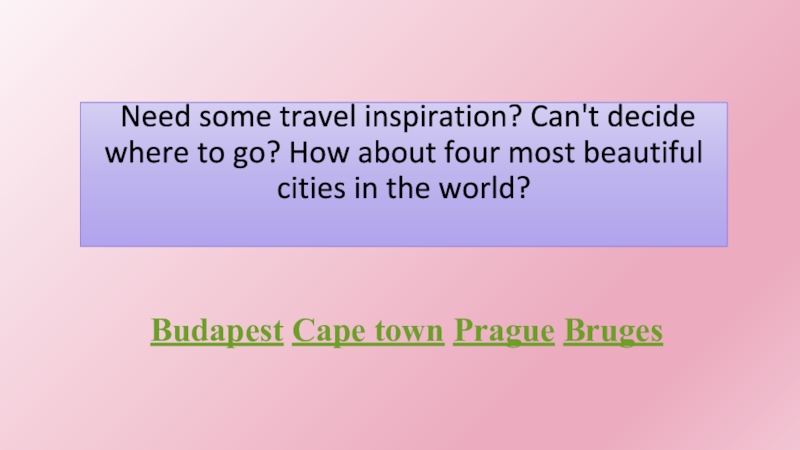 Budapest Cape town Prague Bruges