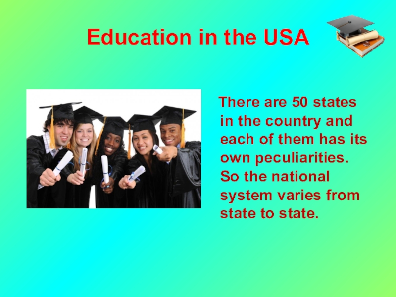 Education in the USA   There are 50 states in the country and each of them