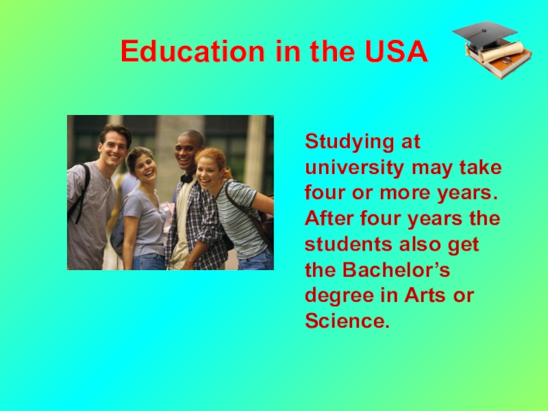 Education in the USA   Studying at college lasts for four years, and after that the