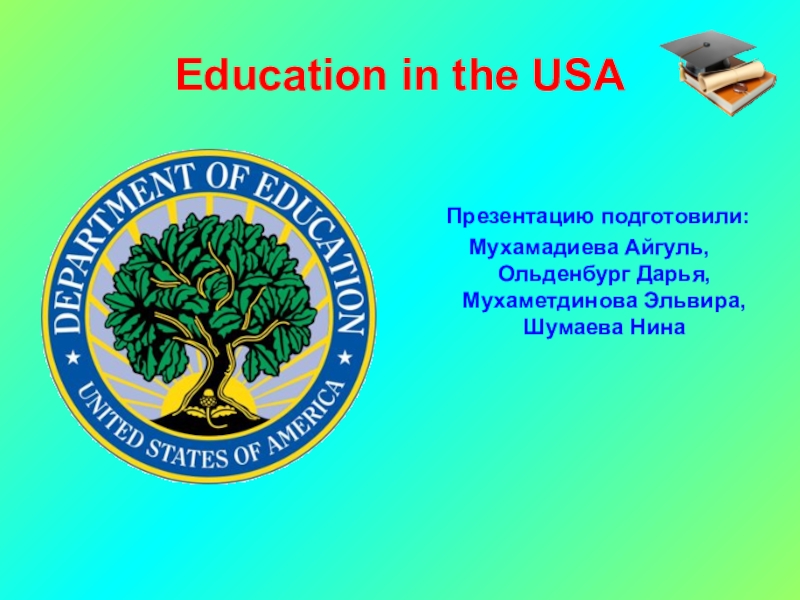 Education in the USA  Презентацию подготовили:Мухамадиева Айгуль, Ольденбург Дарья, Мухаметдинова Эльвира, Шумаева Нина
