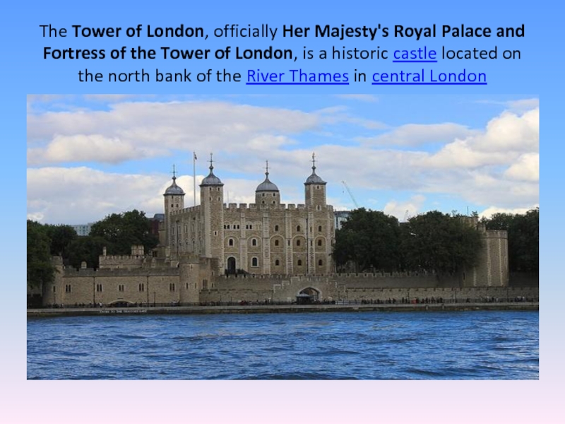 Слайд 21The Tower of London, officially Her Majesty's Royal Palace and Fortress of the