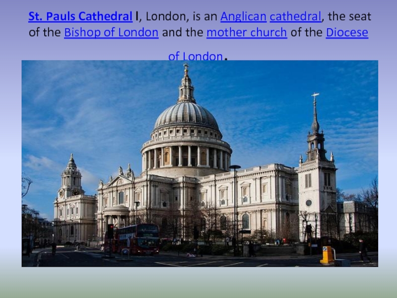 Слайд 25 St. Pauls Cathedral l, London, is an Anglican cathedral, the seat of the Bishop