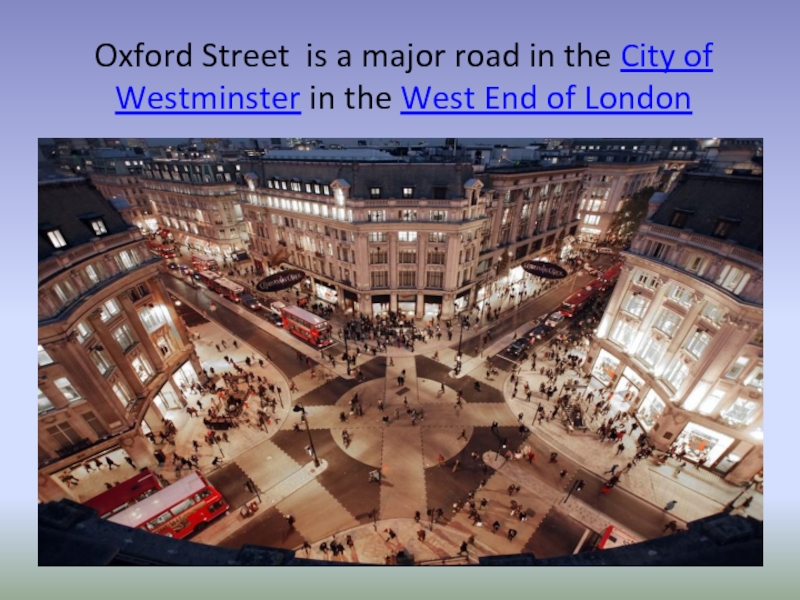 Слайд 17Oxford Street  is a major road in the City of Westminster in the West