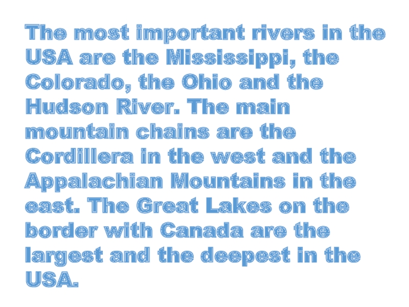 Слайд 5The most important rivers in the USA are the Mississippi, the