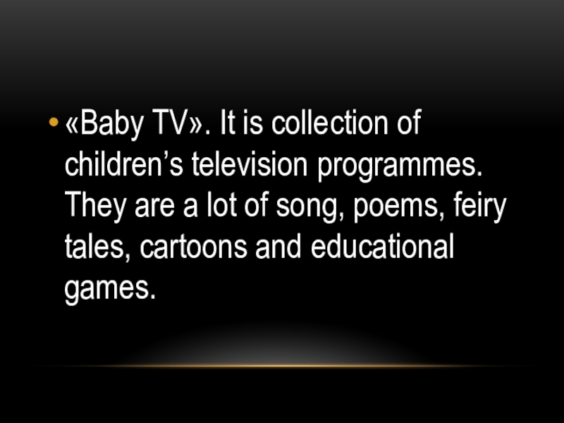 Слайд 13«Baby TV». It is collection of children’s television programmes. They are