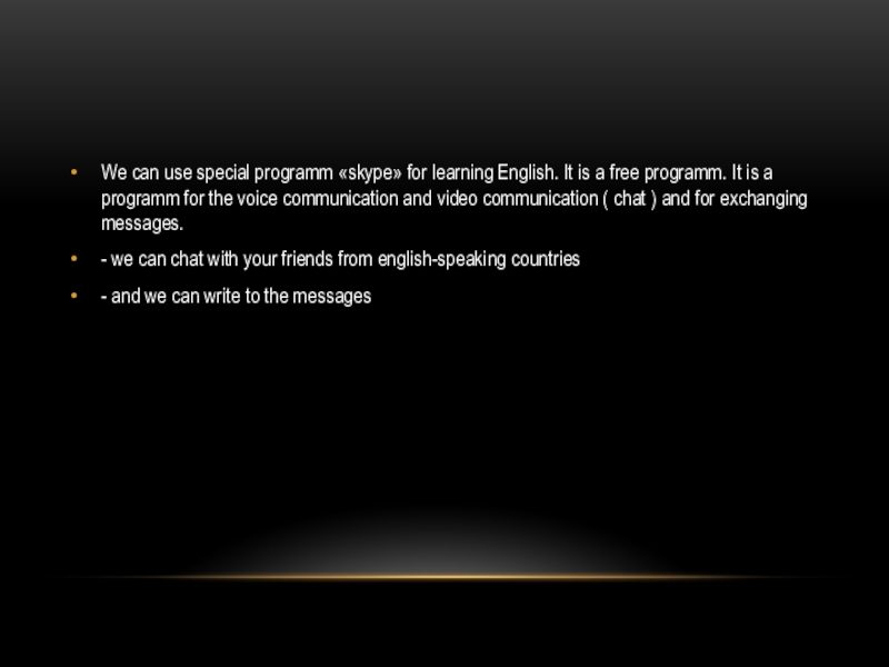 Слайд 7We can use special programm «skype» for learning English. It is