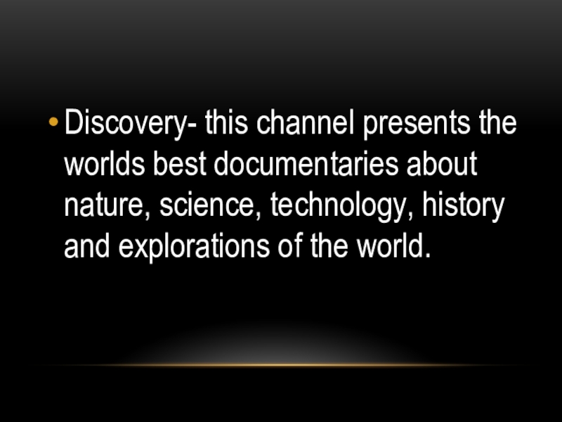 Слайд 21Discovery- this channel presents the worlds best documentaries about nature, science,