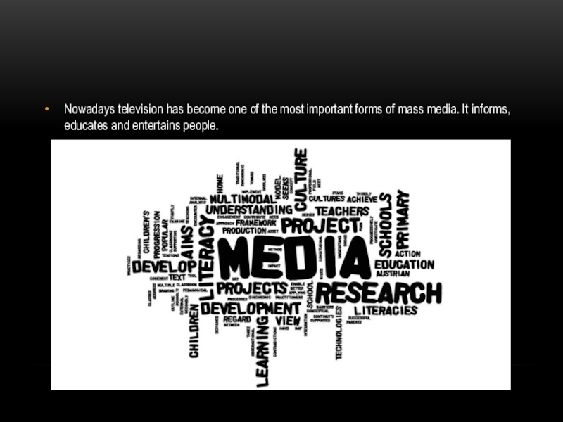 Слайд 11Nowadays television has become one of the most important forms of