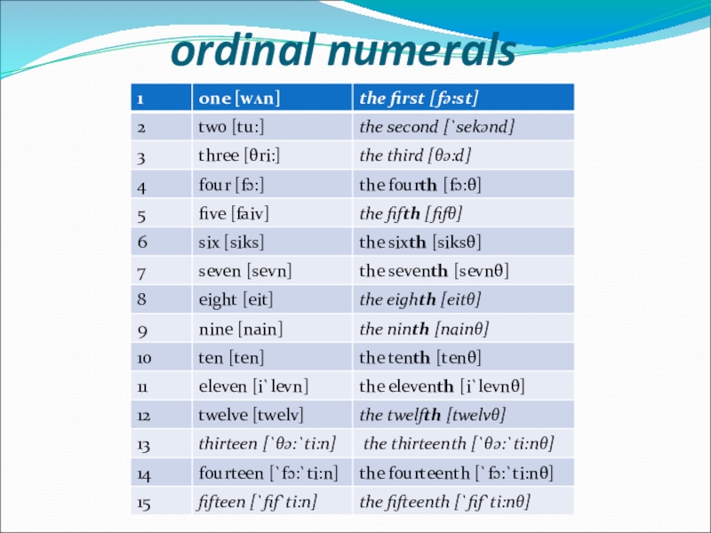 Слайд 18ordinal numerals