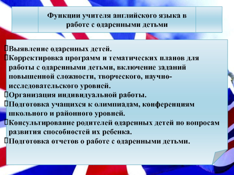 Функции учителя английского языка в работе с одаренными детьми