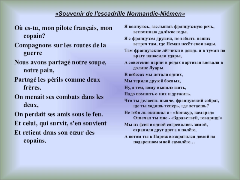 Я с французом дружил, не забыть наших встреч там, где Неман несёт свои воды.