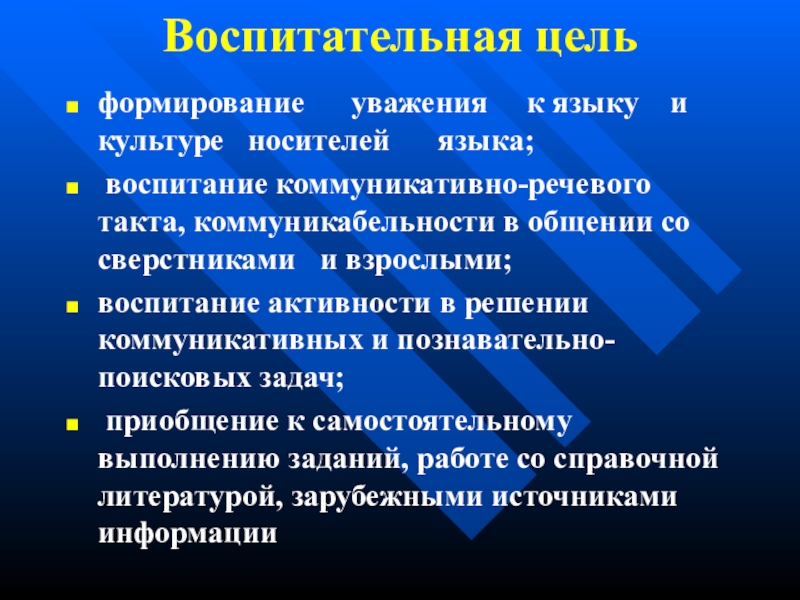 Воспитательная цельформирование   уважения   к языку  и культуре  носителей   языка;