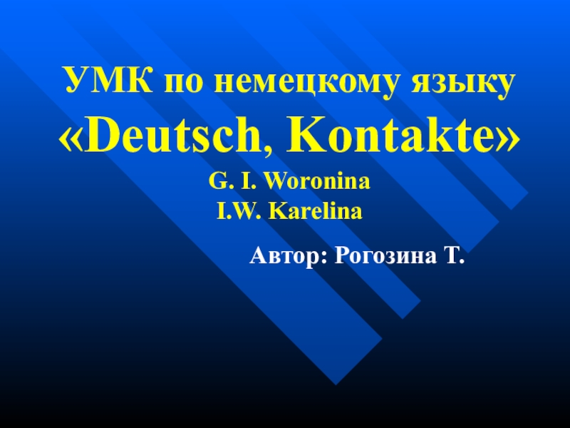 Слайд 1 УМК по немецкому языку «Deutsch, Kontakte» G. I. Woronina I.W. Karelina