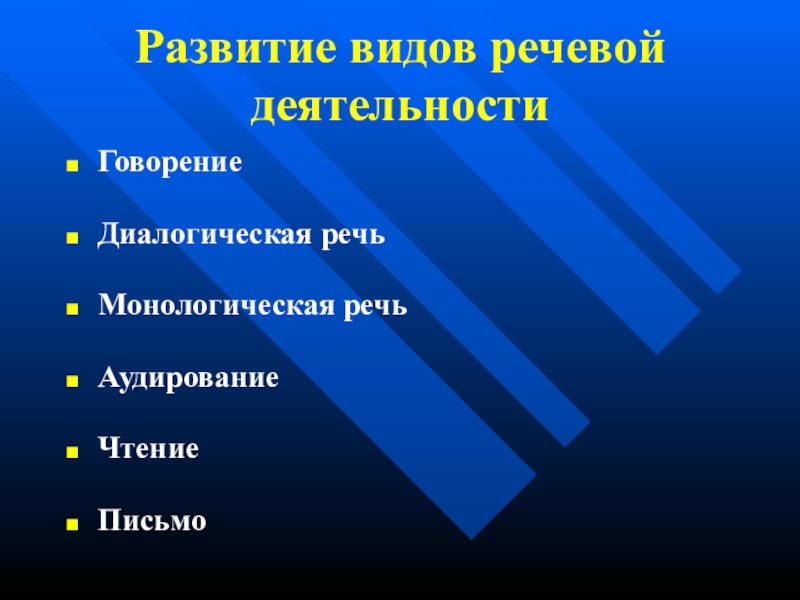 Слайд 13Развитие видов речевой деятельности