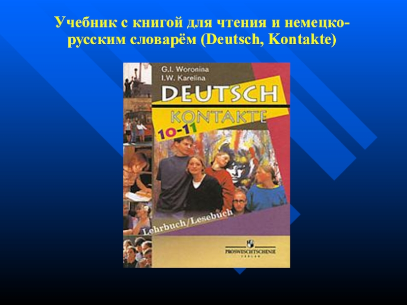 Слайд 3Учебник с книгой для чтения и немецко-русским словарём (Deutsch, Kontakte)
