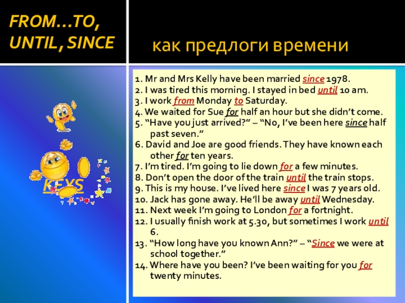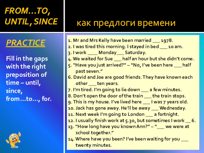 1. Mr and Mrs Kelly have been married ___ 1978.