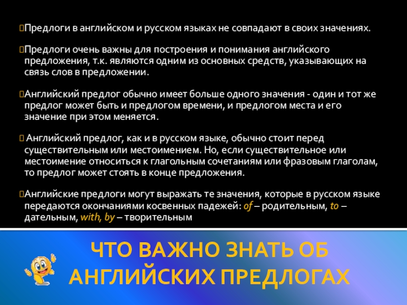 ЧТО ВАЖНО ЗНАТЬ ОБ АНГЛИЙСКИХ ПРЕДЛОГАХ
