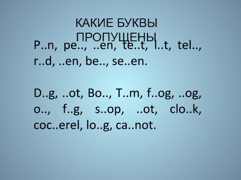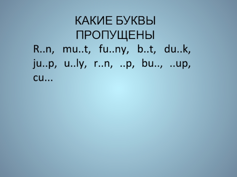 Слайд 3КАКИЕ БУКВЫ ПРОПУЩЕНЫ