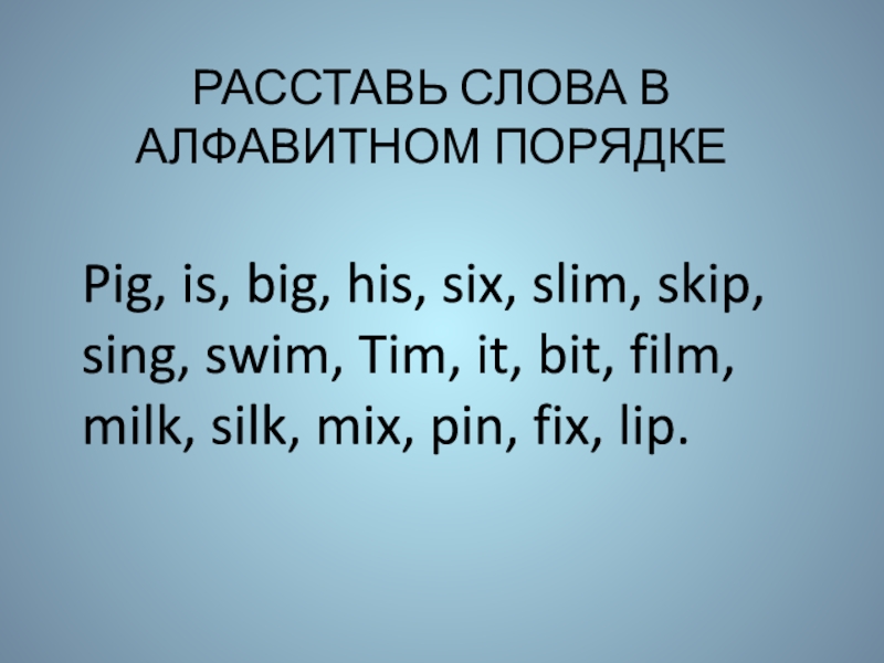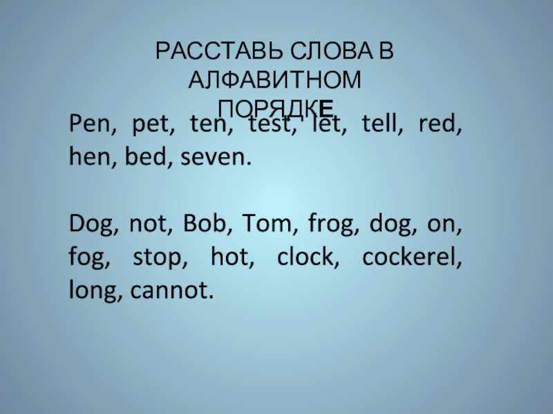 Слайд 4РАССТАВЬ СЛОВА В АЛФАВИТНОМ ПОРЯДКЕ