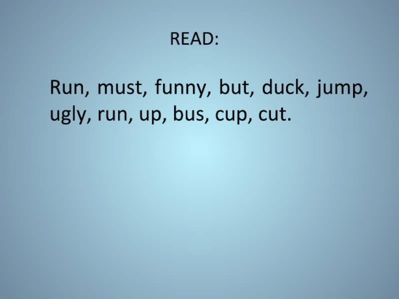 Run, must, funny, but, duck, jump, ugly, run, up, bus, cup,