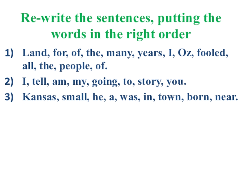 Слайд 5Re-write the sentences, putting the words in the right order