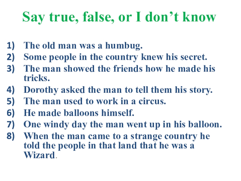Слайд 3Say true, false, or I don’t know
