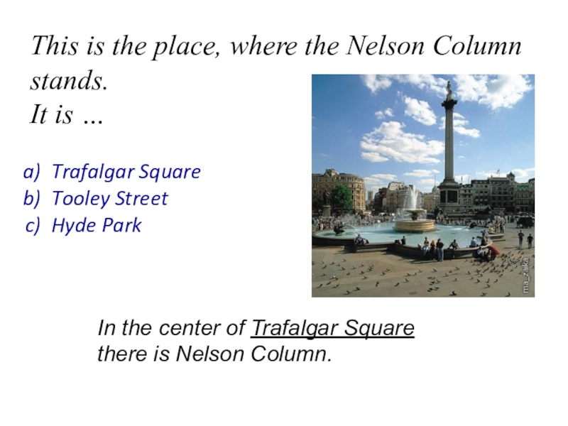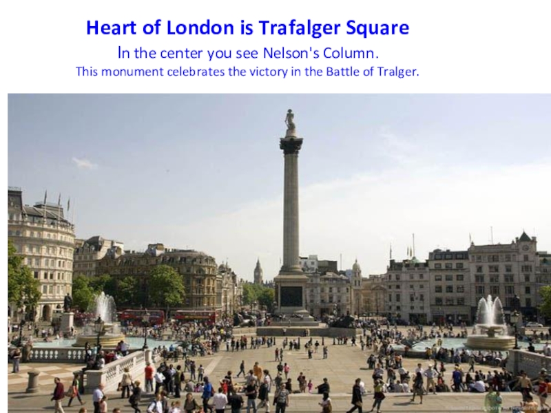 In the center of Trafalgar Square there is Nelson Column.