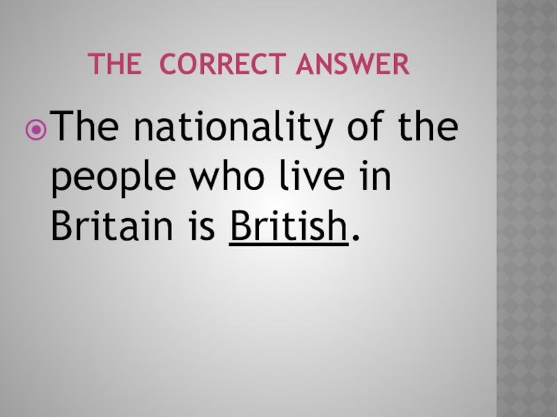 the correct answerThe nationality of the people who live in Britain is British.