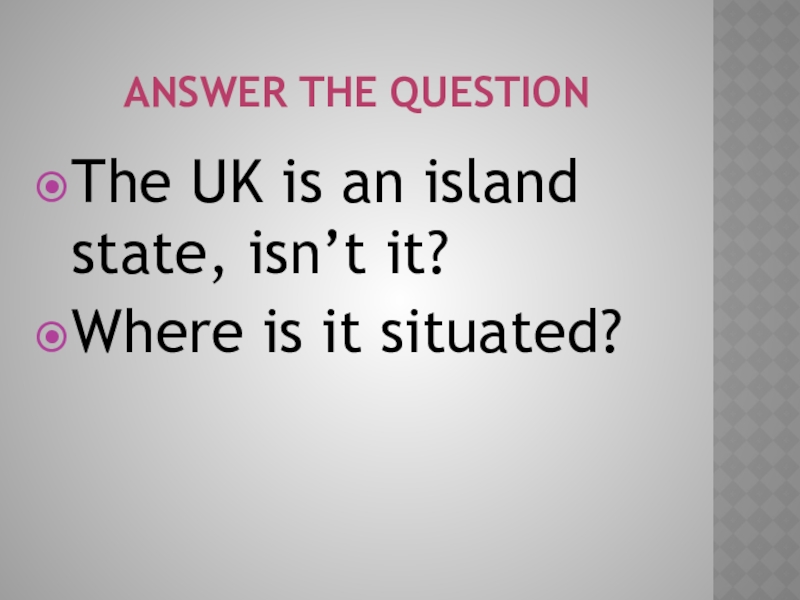 Answer the QuestionThe UK is an island state, isn’t it?Where is it situated?