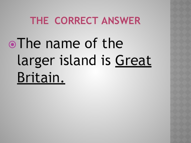the correct answerThe name of the larger island is Great Britain.