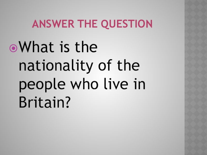 Answer the QuestionWhat is the nationality of the people who live in Britain?