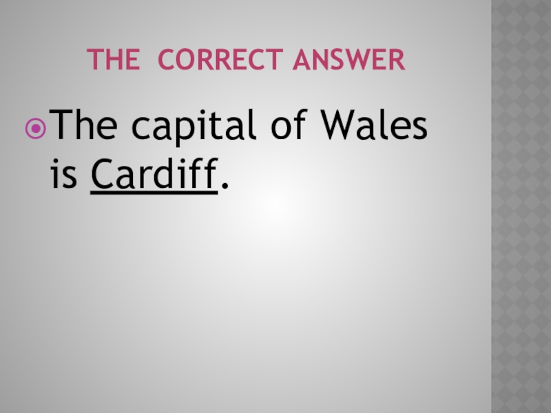 the correct answerThe capital of Wales is Cardiff.