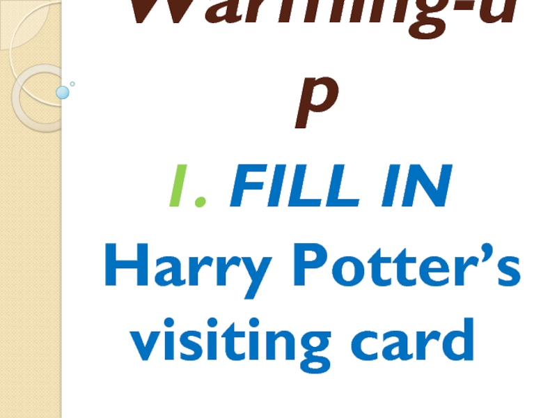 Warming-up1. FILL IN Harry Potter’s visiting card