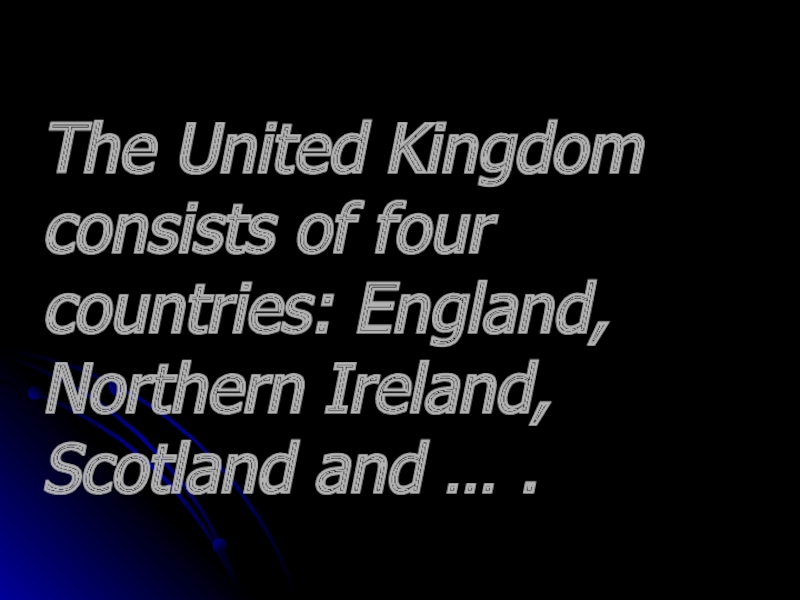 The United Kingdom consists of four countries: England, Northern Ireland, Scotland and … .