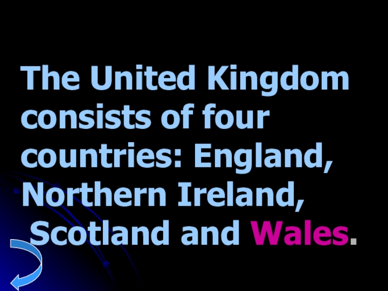 The United Kingdom consists of four countries: England,Northern Ireland, Scotland and Wales.