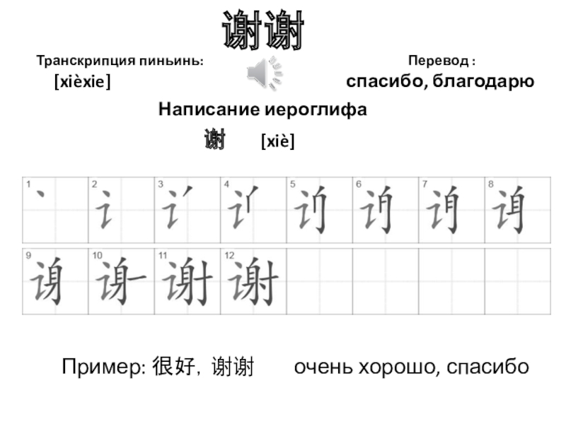 Пример: 很好,谢谢 очень хорошо, спасибо