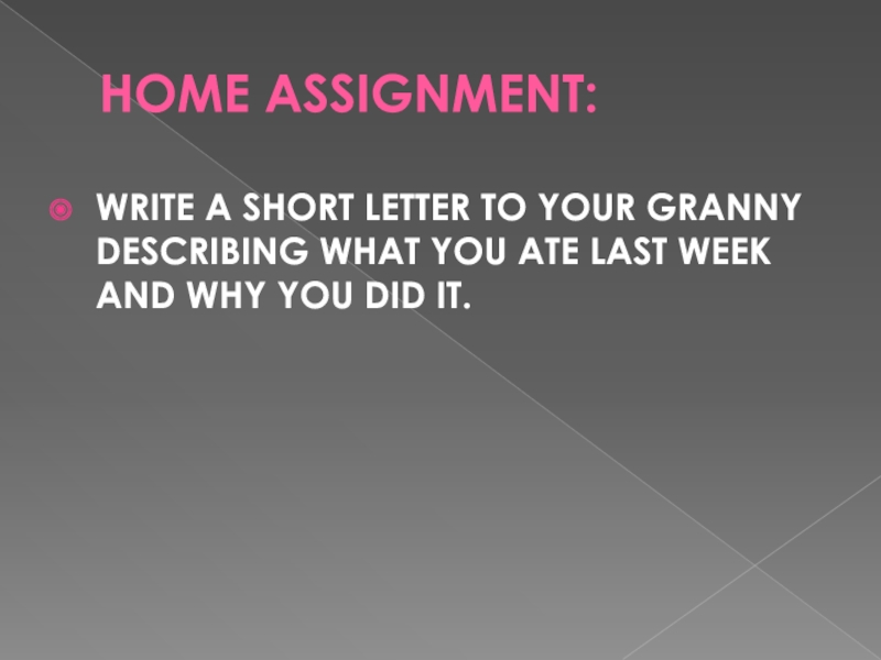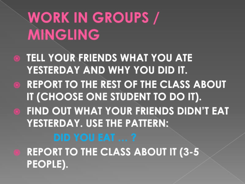 SPEAK ABOUT THE FOOD THEY ATE / DIDN’T EAT AND WHY (ЛИЧНОСТНЫЕ)