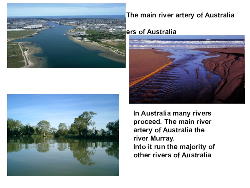 In Australia many rivers proceed. The main river artery of Australia the river Murray.