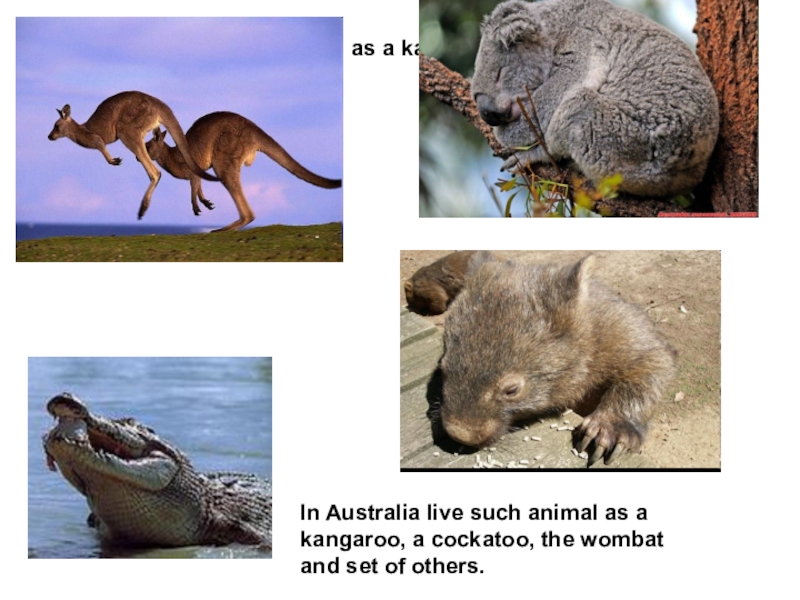 In Australia live such animal as a kangaroo, a cockatoo, the wombat and set of others.