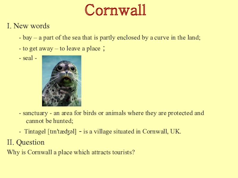 CornwallI. New words- bay – a part of the sea that is partly enclosed by a curve