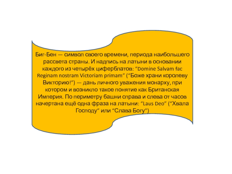 Слайд 6Биг-Бен — символ своего времени, периода наибольшего рассвета страны. И надпись