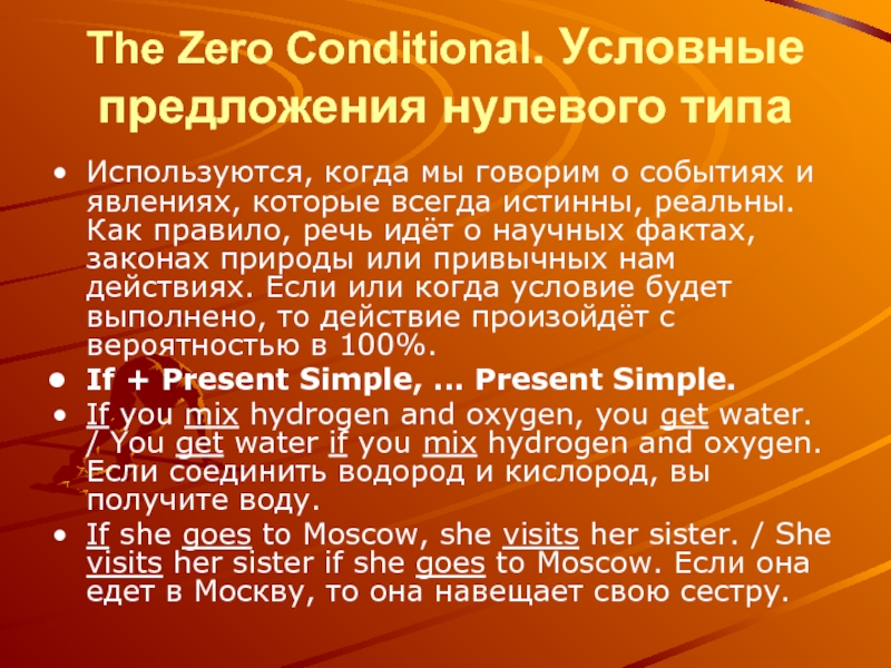 Слайд 5The Zero Conditional. Условные предложения нулевого типа