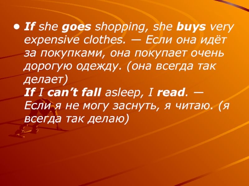 Слайд 7If she goes shopping, she buys very expensive clothes. — Если